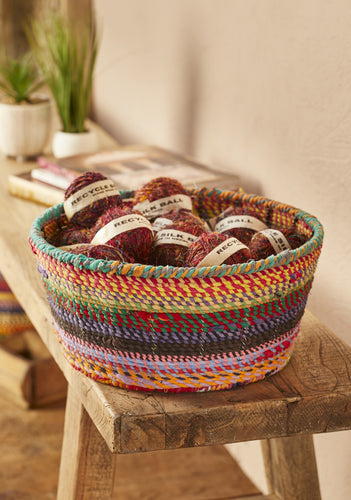 Recycled Fabric Covered Low Round Metal Basket