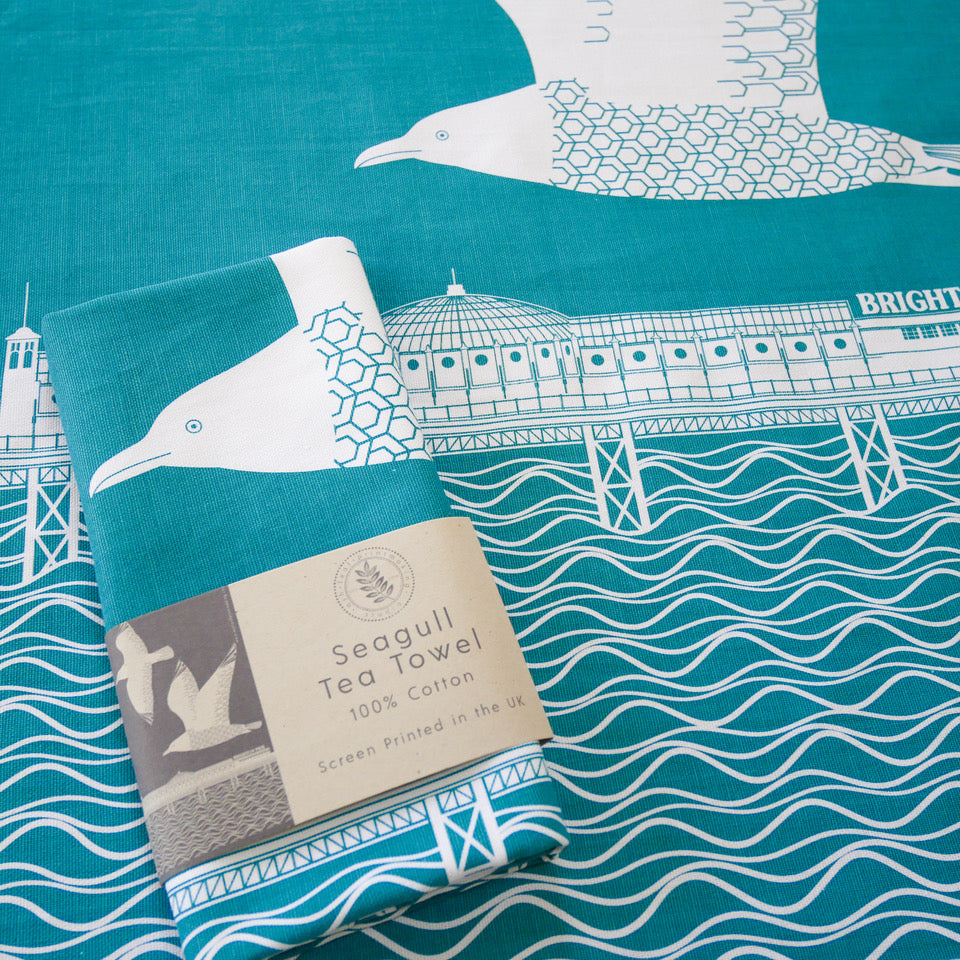 Seagull Tea Towel, Handprinted by Ashleaf Printmaking.